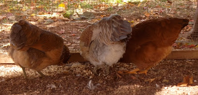 It was a beautiful morning and everyone wanted to get outside. We've had two weeks of rainy, overcast weather, but yesterday and today were warm and sunny. The chickens were out first thing. In another 2 weeks we may have eggs.